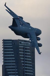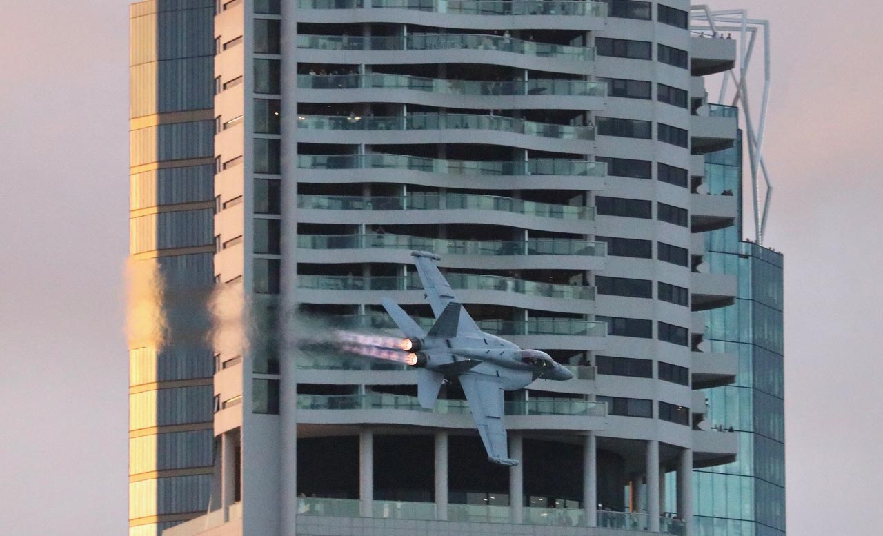 A Royal Australian Air Force EA-18G Growler, C-17A Globemaster III and, for the first time, a C-27J Spartan conducted flypasts and flying displays for the Brisbane Festival Riverfire this evening.