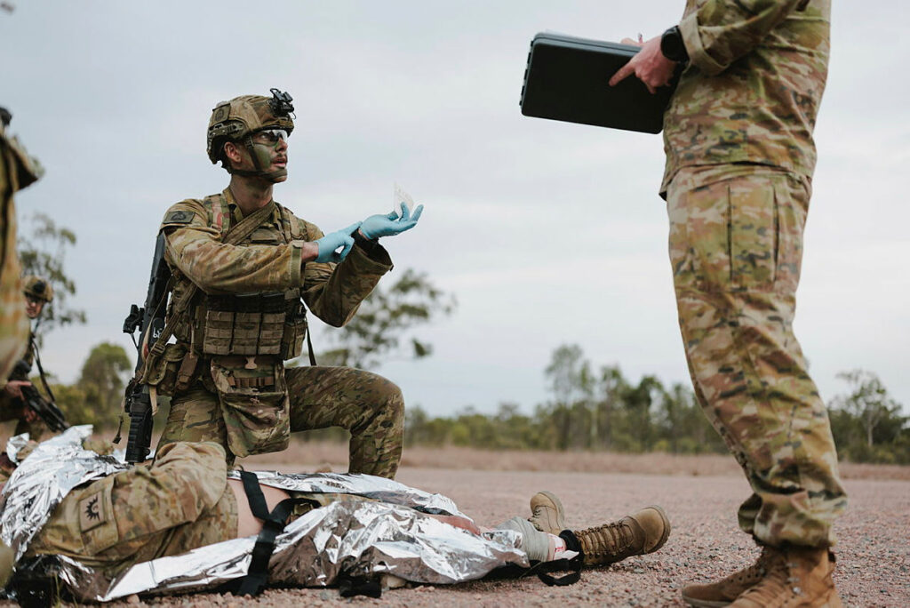 CAPTION: A soldier from 3rd Battalion, the Royal Australian Regiment, gives a casualty handover brief during the Duke of Gloucester Cup. Photo by Corporal Cameron Pegg.