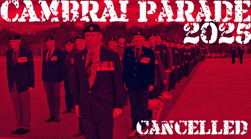 “… the planned Cambrai Parade and following BBQ have been cancelled, as the majority of the Regiment will still be deployed across the country conducting their ongoing support to critical land projects. Quite a disappointment for those keen to attend, however the Regiment’s operational tasking must take priority.”