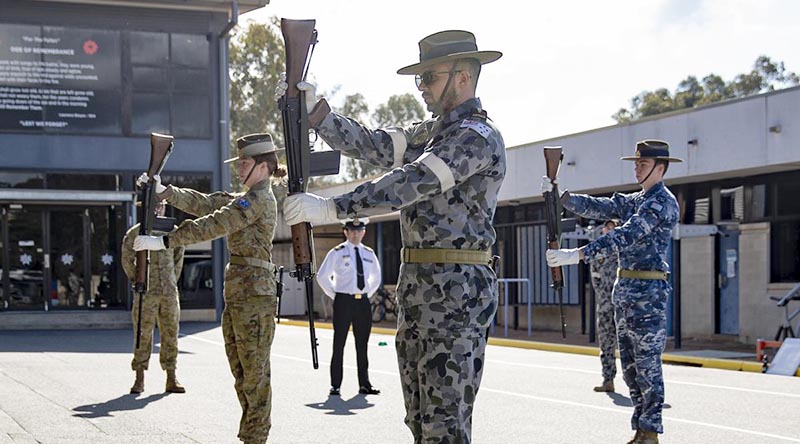 CAPTION: Members of Australia’s Federation Guard practise drill for the upcoming Victory in the Pacific Day ceremony. Story and photo by Corporal Julia Whitwell.