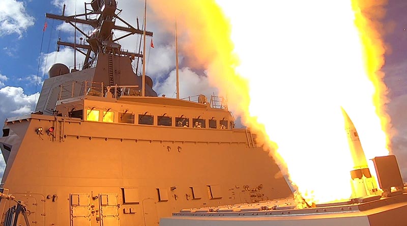 FILE PHOTO: HMAS Hobart fires an SM2. Photo by Chief Petty Officer Cameron Martin.