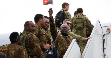 The Princess Royal, joined by husband Vice-Admiral Sir Timothy Laurence, was greeted by a ceremonial quarter guard after landing on 5th Brigade’s parade ground in an Australian Army MRH-90 Taipan helicopter.
