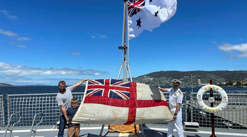 “They were just so keen to hand over the ensign and memorabilia to the Navy as they believe that’s where this will be appreciated the most,” Commander McBain said.