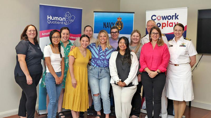 CAPTION: Navy Retention staff and Cowork and Coplay staff with participants during the Navy’s co-located education and childcare trial in Rockingham.