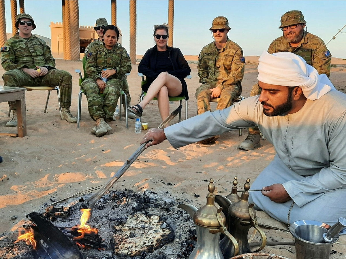 Eleven members from the ADF and one from the New Zealand Defence Force (NZDF) stationed at Headquarters Middle East (HQME) took part in a Foreign Forces Desert Immersion Course, facilitated by the United Arab Emirates (UAE) Armed Forces at the Saeed Bin Tahnoon Desert Survival School, about 80km south of Abu Dhabi.