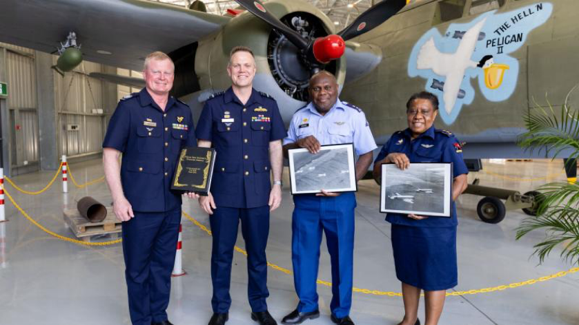 He presented pictorial history books and photographs to PNG Defence Force Air Transport Wing Commanding Officer Lieutenant Colonel Douglas Vavar and Director of Air Operations Lieutenant Colonel Nancy Wii.