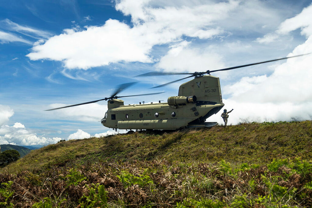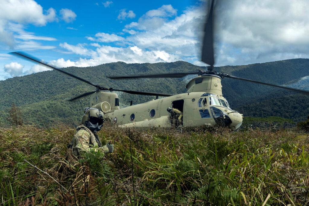 In late September, Townsville-based 5th Aviation Regiment flew four of its CH-47F Chinooks to Papua New Guinea to take part in military exercises, including combined operations with the Papua New Guinea Defence Force (PNGDF).