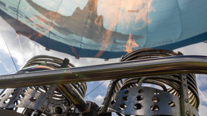 CAPTION: The Air Force Balloon turns on the afterburners over Mount Panorama.
