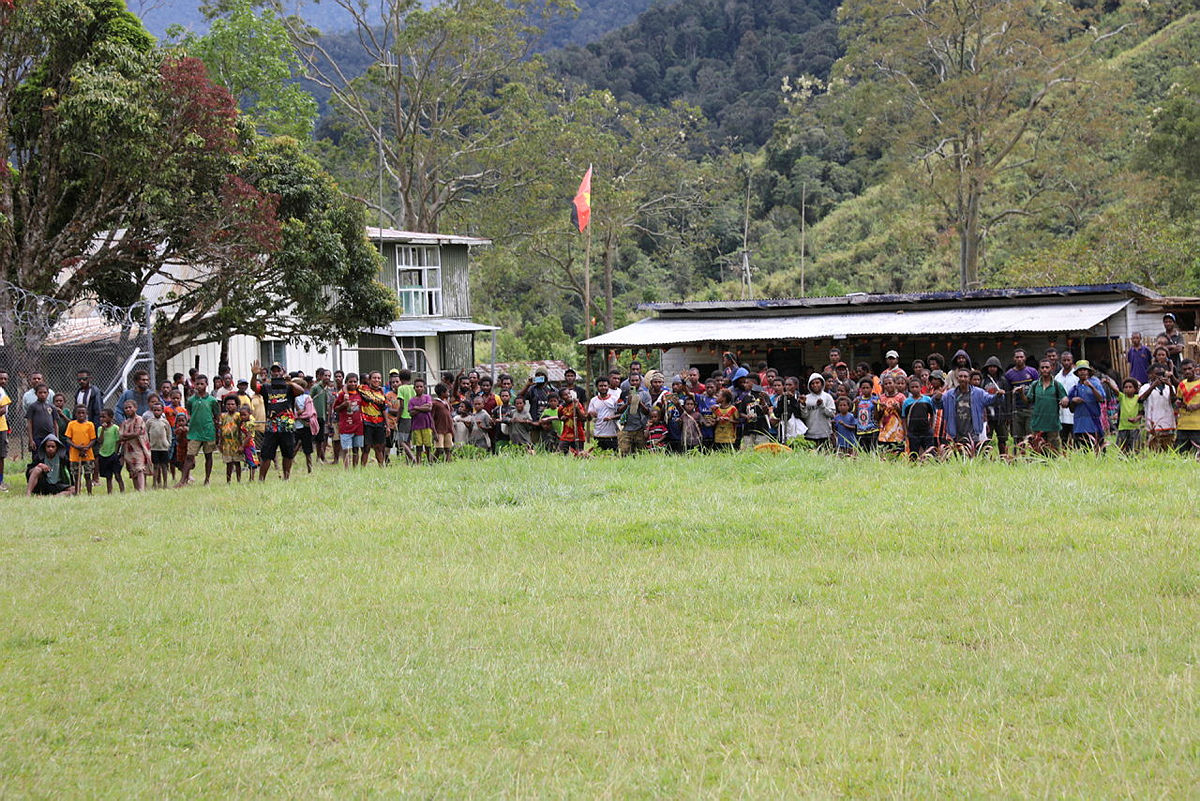 CAPTION: The village of Woitpe, in the Central Highlands of Papua New Guinea, turned out to welcome members of Task Unit Brahman who delivered school supplies and food staples as part of a community outreach activity during Exercise Helicon Luk 2025.