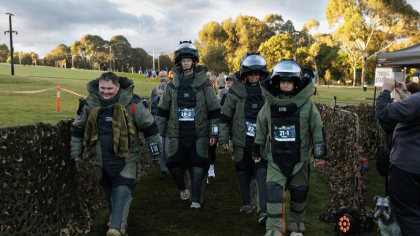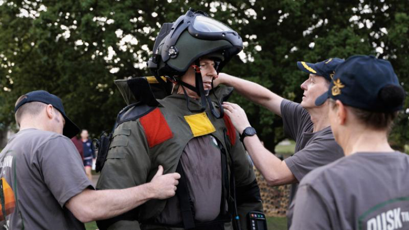 Bomb suits help protect users from explosive blast and fragmentation effects. They’re hot, heavy and not something you’d typically wear while walking half-marathon distances, from dusk till dawn.
