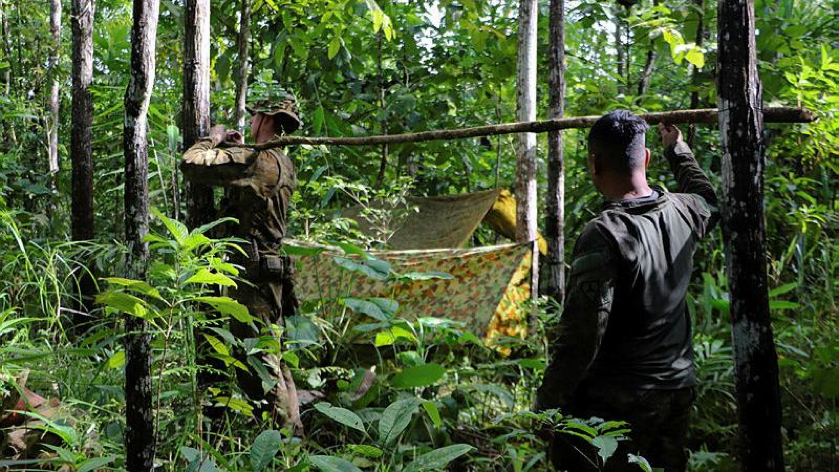 CAPTION: Australian and Philippine Army soldiers set up sleeping areas during a jungle survival course in the Philippines on Exercise Kasangga.