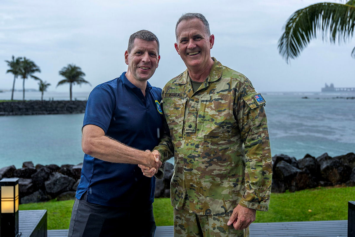 CAPTION: Australian Army officer Major Paul Randall, right, with Deputy Commander for Exercise Pacific Partnership 2025 Colonel Matt Churchward, of the Royal Marines, in Samoa.