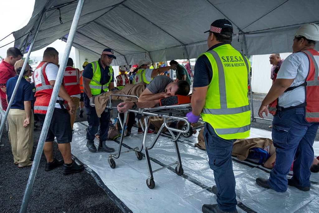 CAPTION: Samoan Emergency Services tend to a casualty during a simulated disaster-relief exercise.