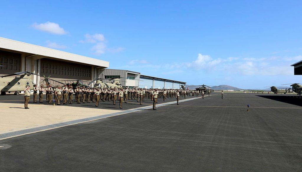 Days later, the newly relocated members of the 1st Aviation Regiment gathered alongside personnel from the 5th Aviation Regiment and 16th Aviation Support Battalion in Townsville.