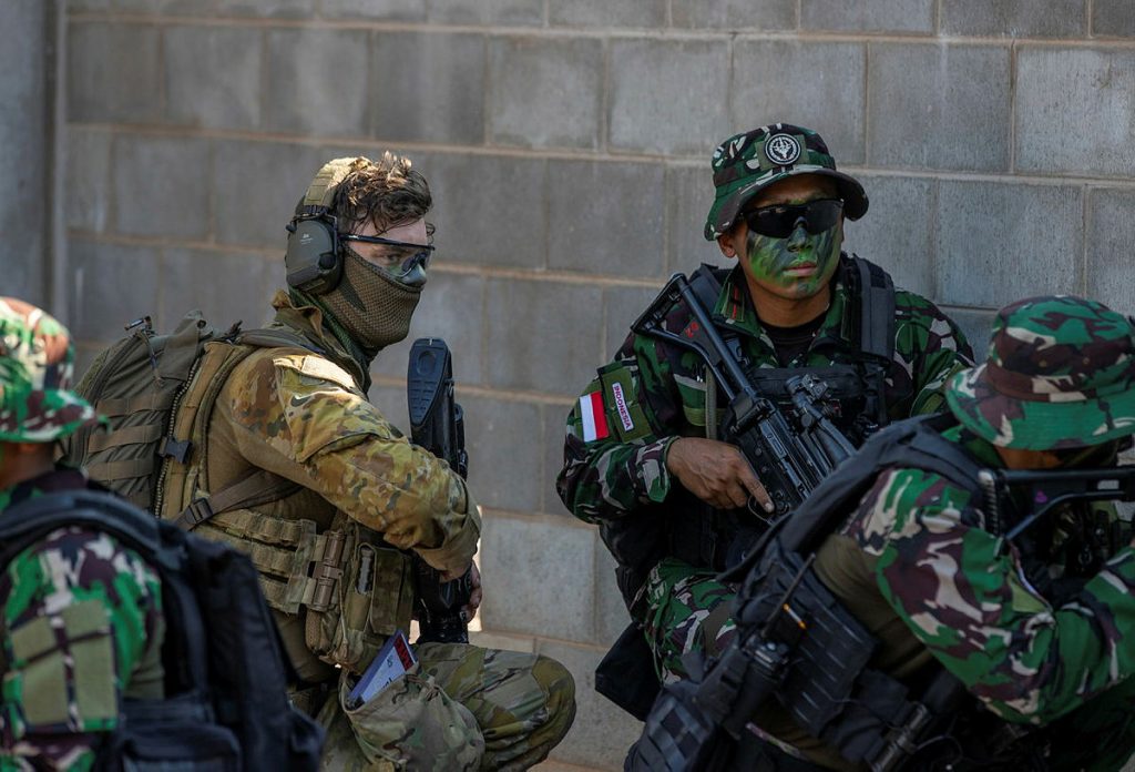 Drenched in sweat after their culminating activity, members of the Indonesian National Armed Forces (TNI) lounged in the shade alongside their Australian Army mates.