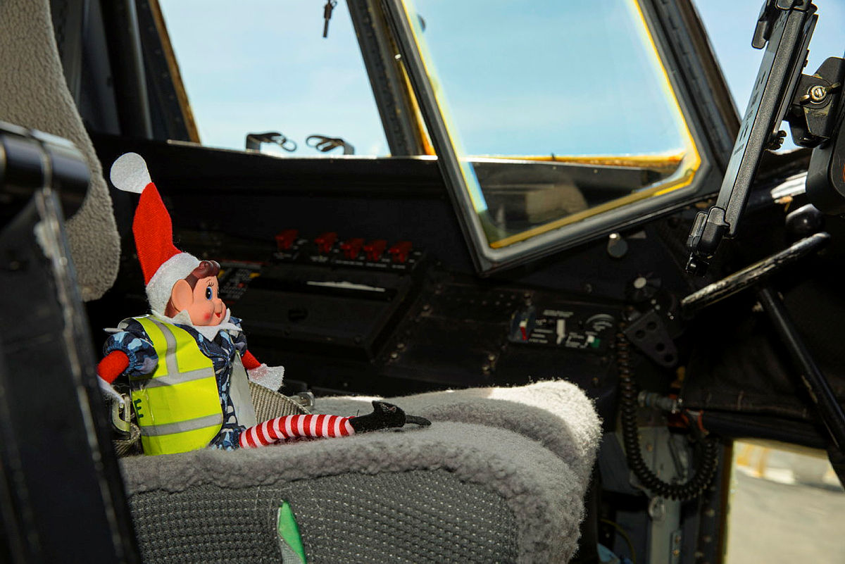 CAPTION: Alfie the Elf conducts pre-flight checks on the flight deck of a C-130J Hercules at RAAF Base Richmond.
