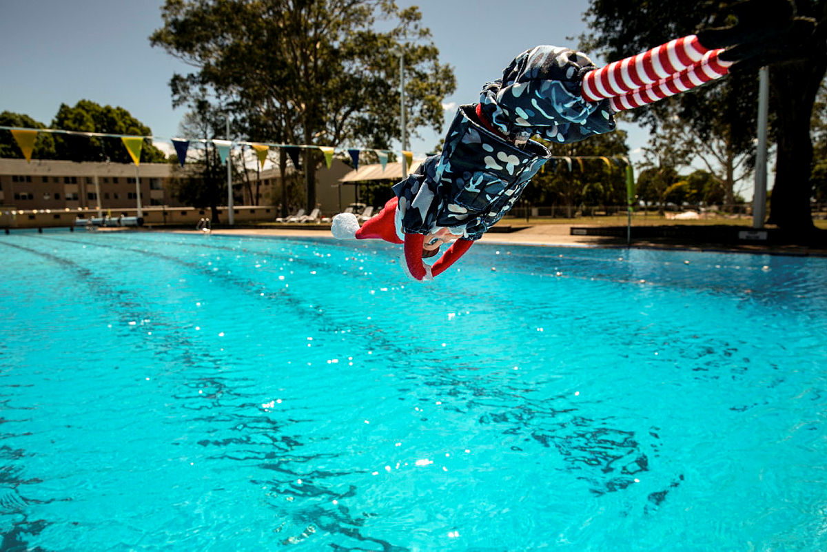 CAPTION: Alfie the Elf goes for a swim at the RAAF Base Richmond pool.