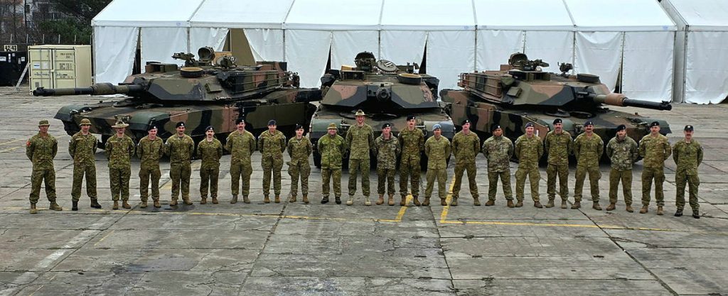 CAPTION: The Operation Kudu contingent supporting the delivery of the final tranche of M1A1 Abrams tanks being gifted by the Australian Government to the Armed Forces of Ukraine.