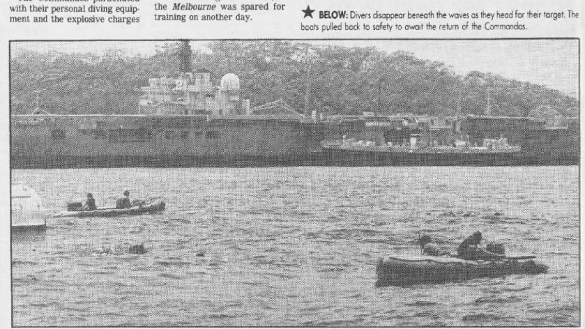 A team of highly trained and heavily equipped soldiers parachuted into Sydney Harbour with one thought in mind: destroy HMAS Melbourne.